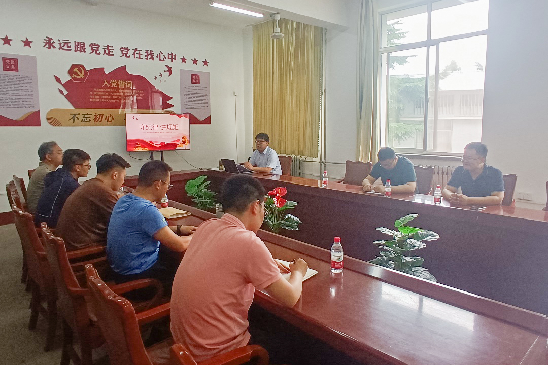 资源党支部书记张培鹏为支部全体党员讲授党纪学习教育专题党课。