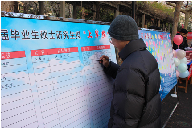 别出心裁,精心设计“考研助力站”“拟上岸榜”两块展板,为考研学子送上真挚祝福。