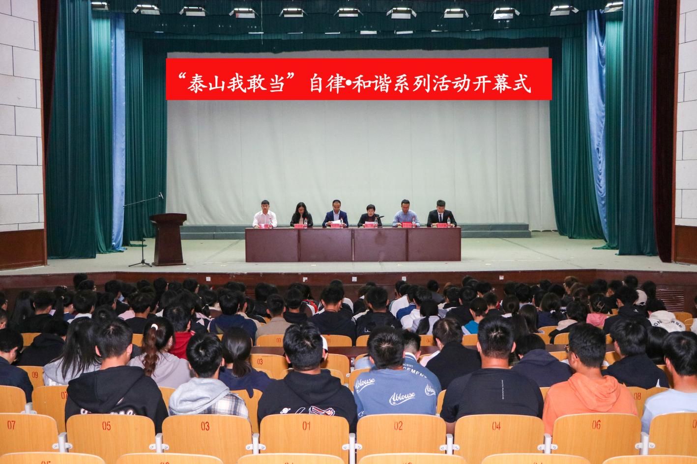 第八届“泰山我敢当”大学生自律•和谐系列活动开幕式在西校园礼堂举行。色情av影片