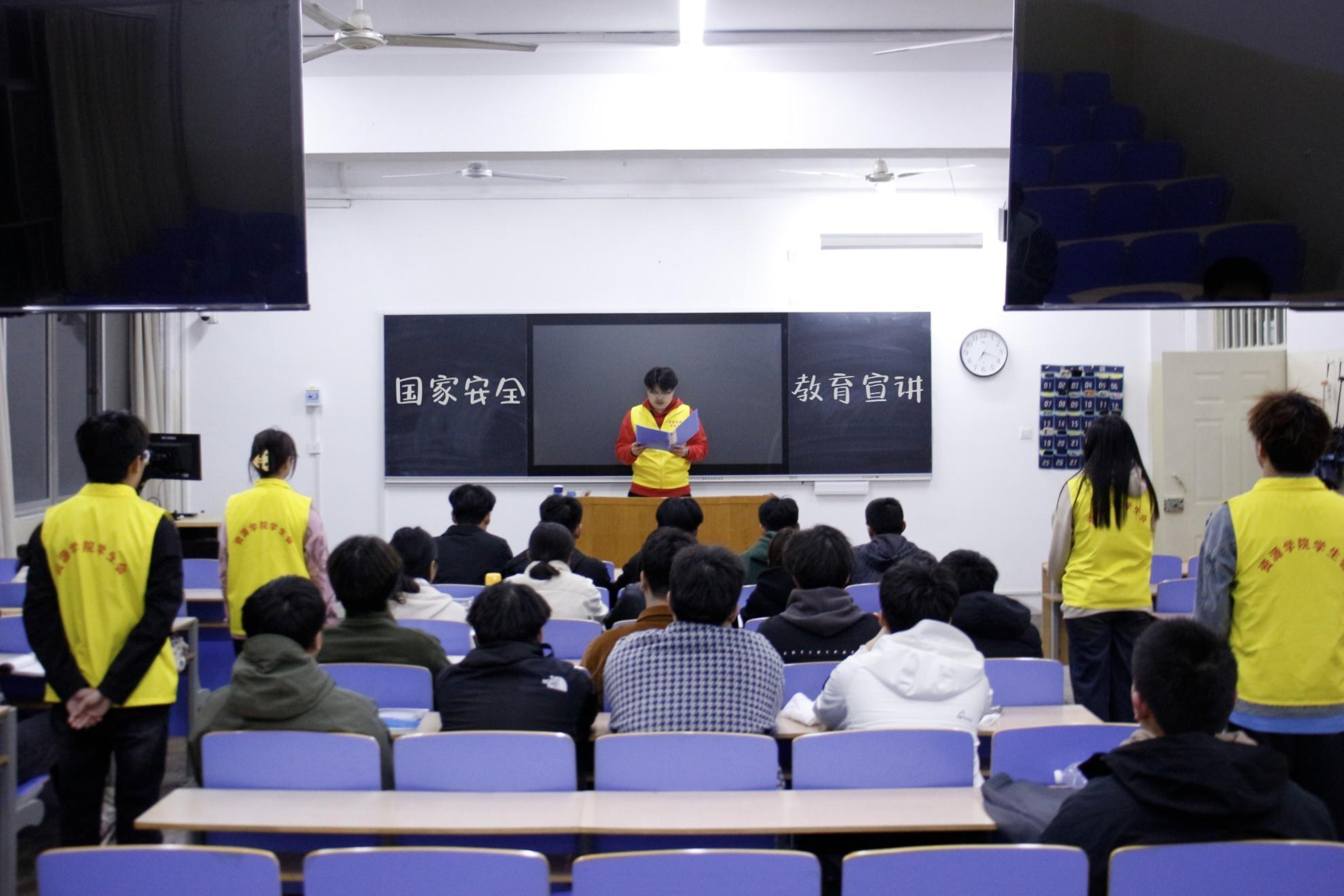 坚持以总体国家安全观为指导,始终把国家安全教育纳入学生的日常学习生活中,在校园主干道、教学楼、图书馆等重点场所悬挂条幅,在各班级开展宣讲,广泛宣传国家安全知识。