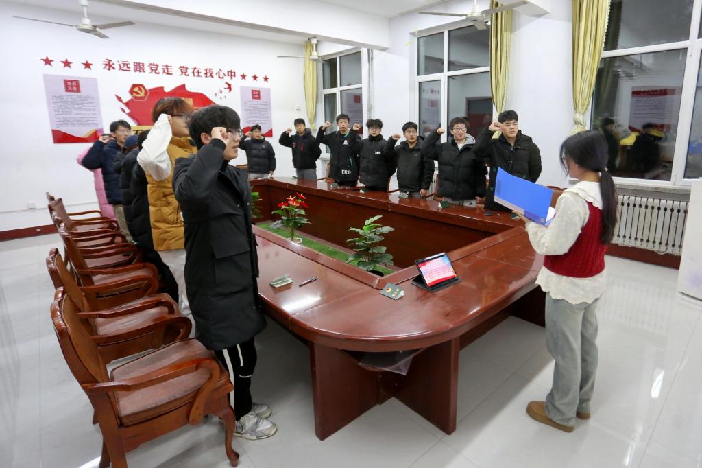在1A214举行入团宣誓仪式。