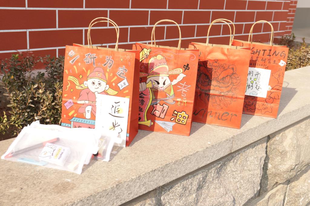 福袋设计活动让考研学子们深刻体会到了学院的支持与温暖,极大地提振了他们的应考信心。愿每一位考研学子鱼跃龙门,独占鳌头,在考研的漫漫征途中披荆斩棘,让梦想之花绚烂绽放。(文:戴晨晨 图:李已夏)