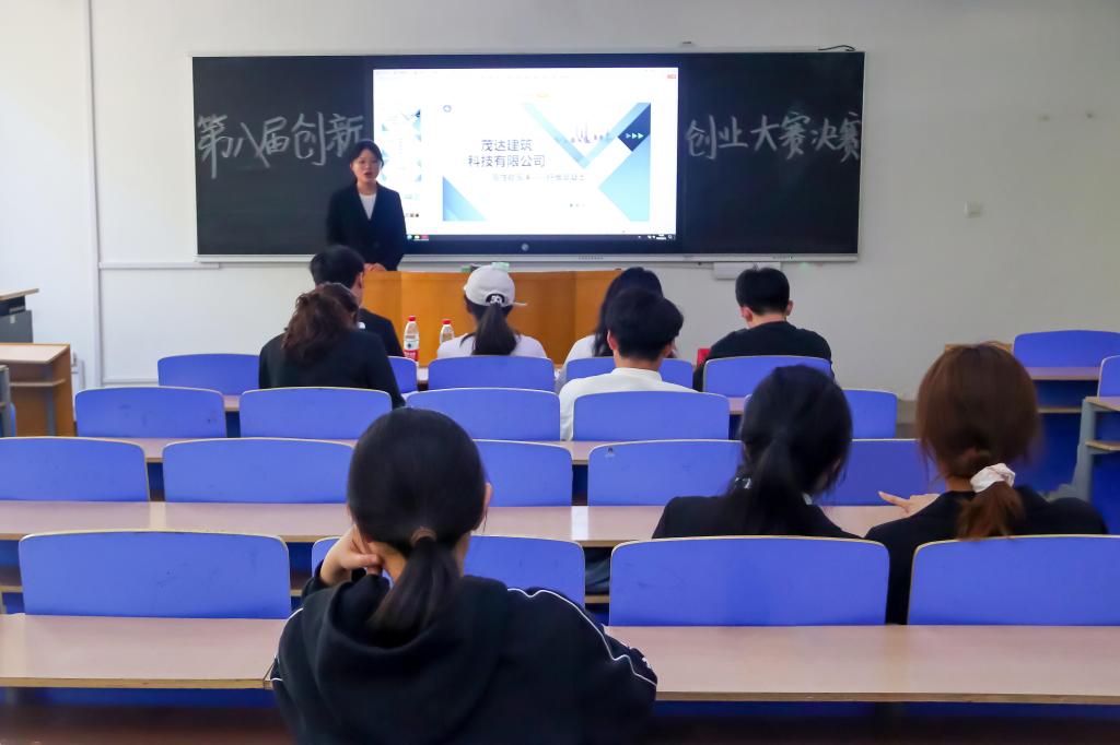 经初赛选拔,共有6支队伍脱颖而出。决赛共分为项目介绍与现场答辩两个环节。现场气氛热烈,各参赛团队通过PPT展示,围绕项目背景、产品服务、竞争优势、发展规划等多方面进行项目介绍。现场答辩环节,评委从创新创意、实用价值、市场前景等方面进行提问和点评,并为项目的进一步完善提出宝贵的建议和指导。