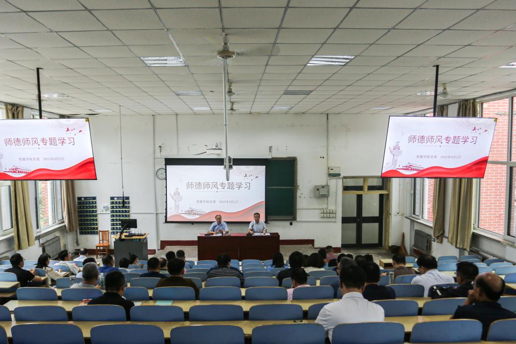 在1A107开展师德师风专题学习。学院党委书记高尚宇主持学习,全体教职工参加。