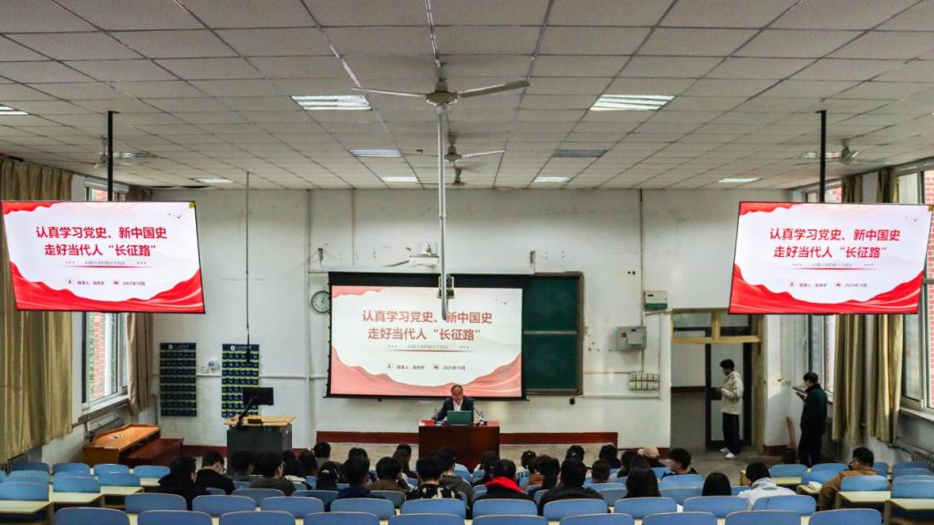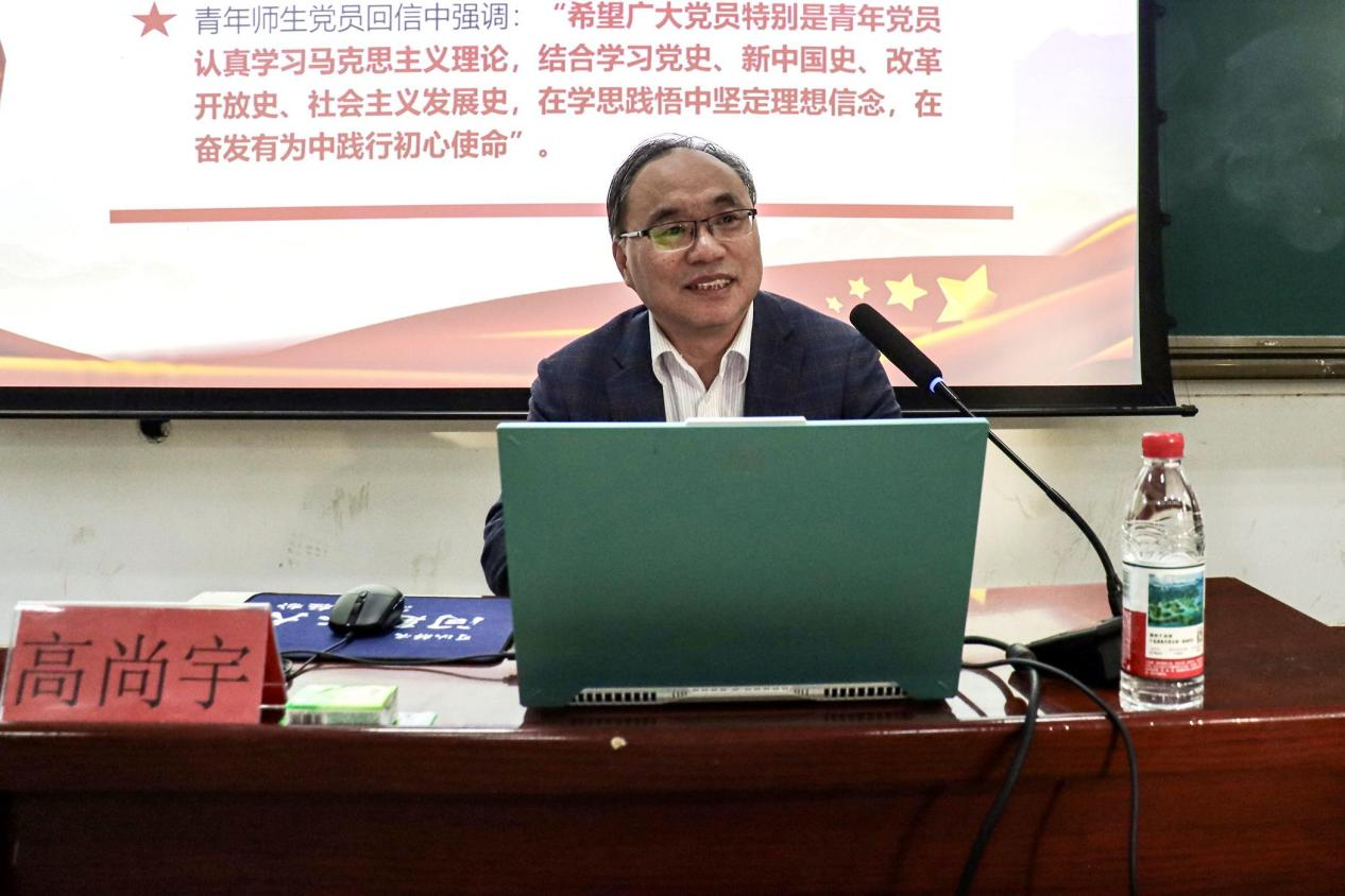 10月29日,色情av影片 党委书记高尚宇在1A107教室为第43期入党积极分子讲授“认真学习党史、新中国史,走好当代人‘长征路’”专题党课。