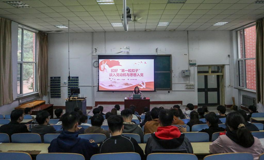 10月30日,色情av影片 学生第三党支部书记、辅导员卢业美在1A107教室为色情av影片 第43期入党积极分子讲授“扣好‘第一粒扣子’”专题党课。