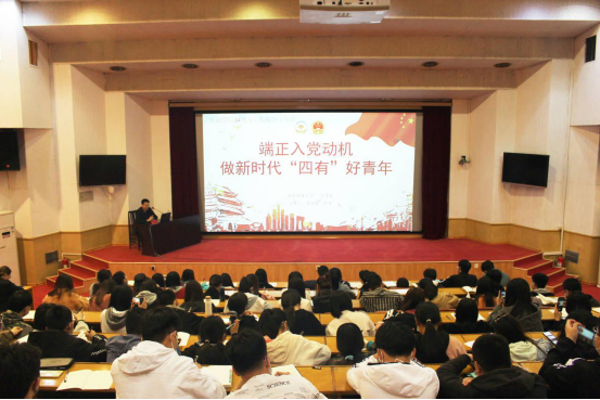 院长王清标在四号楼报告厅为学院第34期入党积极分子讲授“端正入党动机,做新时代四有好青年”专题党课。