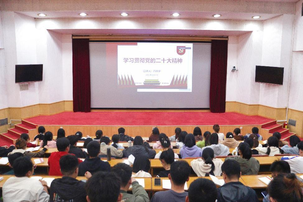 党委书记高尚宇线上讲授“学习贯彻党的二十大精神”专题党课。学院第38期入党积极分子在四号楼报告厅集体听课学习。
