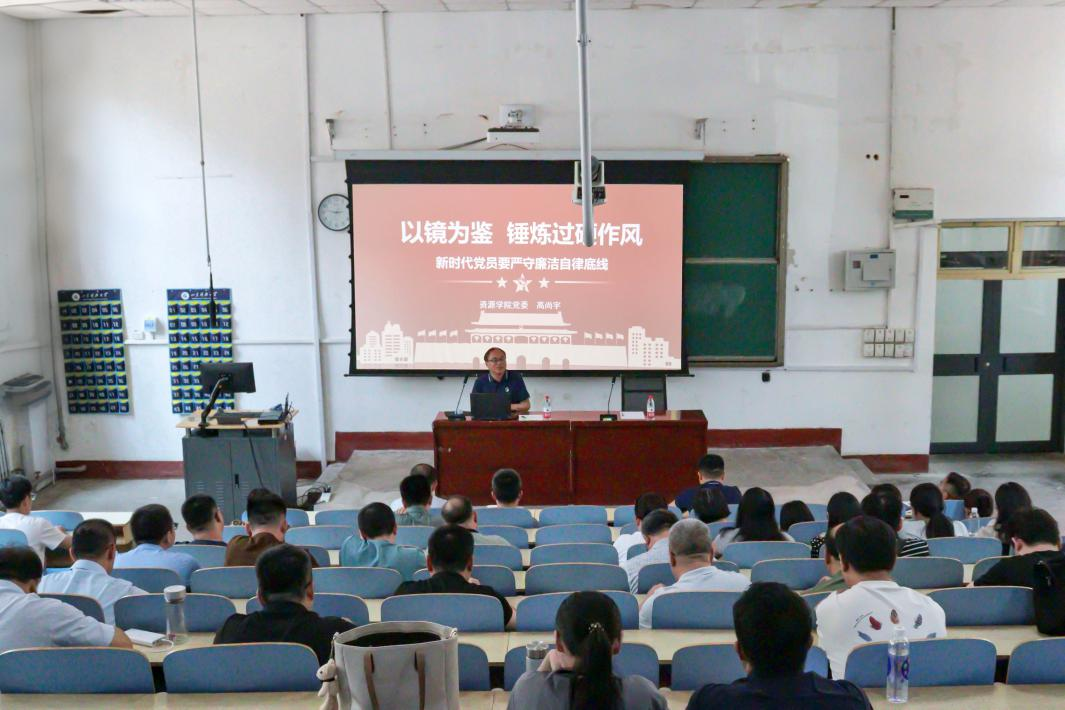 党委书记高尚宇在学院全体教工党员大会上,以“以镜为鉴,锤炼过硬作风”为题,讲授了作风建设专题党课。