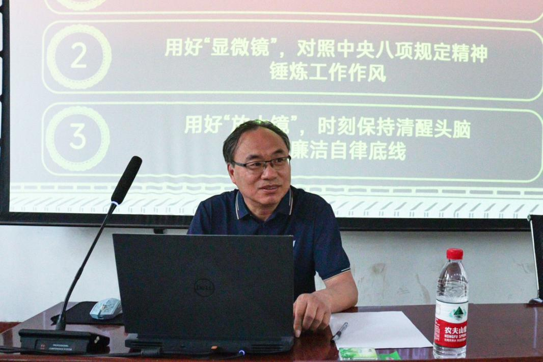 高尚宇紧扣“用好‘望远镜’‘显微镜’‘放大镜’”核心主题,聚焦推进作风建设、筑牢廉洁防线,深入阐述了“望远镜”“显微镜”“放大镜”的深刻内涵。他强调,要用“望远镜”把握时代脉搏,站在党和国家事业发展全局的高度,深化对作风建设重要性的思想认识,时刻同党中央保持高度一致;以“显微镜”洞察细微之处,在日常工作中锤炼严谨务实的工作作风,不放过任何可能影响工作质量和廉洁纪律的细节;用“放大镜”审视自身,在思想、行为、作风上全方位自查自纠,保持清醒头脑,永葆清正廉洁的政治本色。
