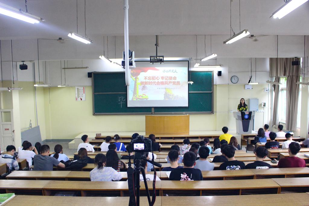 学生第一党支部书记卢业美在5#206为学院全体毕业生党员讲授“不忘初心、牢记使命,做新时代合格共产党人”专题党课。