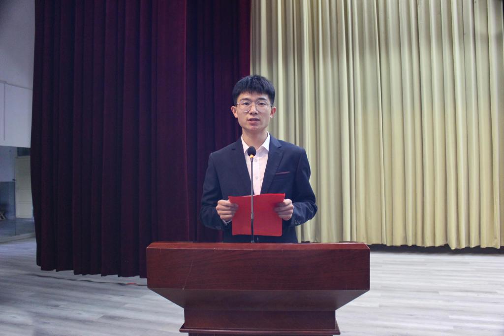 2021级新生助理辅导员代表张鑫玉在会上发言。(文:邱清雅 图:杨志浩 张慧臻)