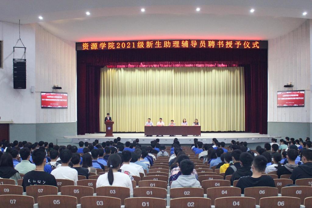 在东校园礼堂召开2021级新生助理辅导员聘书授予仪式。会议由辅导员王淦主持,学院学工办主任兼团委书记洒艳,辅导员张裴、牛会功、张瑞清出席本次会议,全体新生助理辅导员及2021级新生参加。