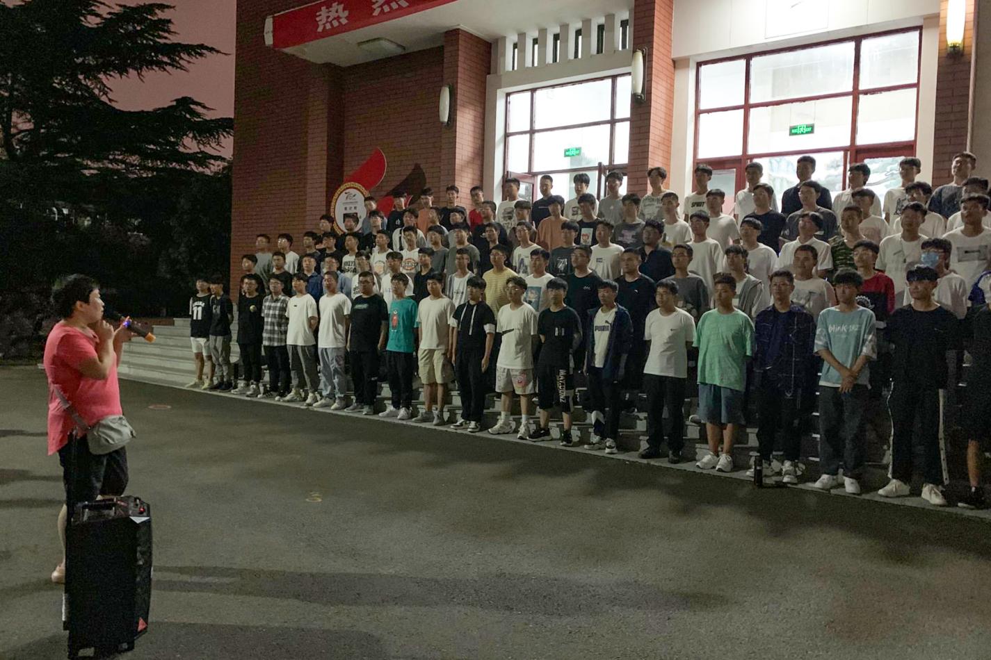 9月14日,色情av影片 团委书记洒艳,王淦等辅导员亲临现场,指导新生练习军歌。