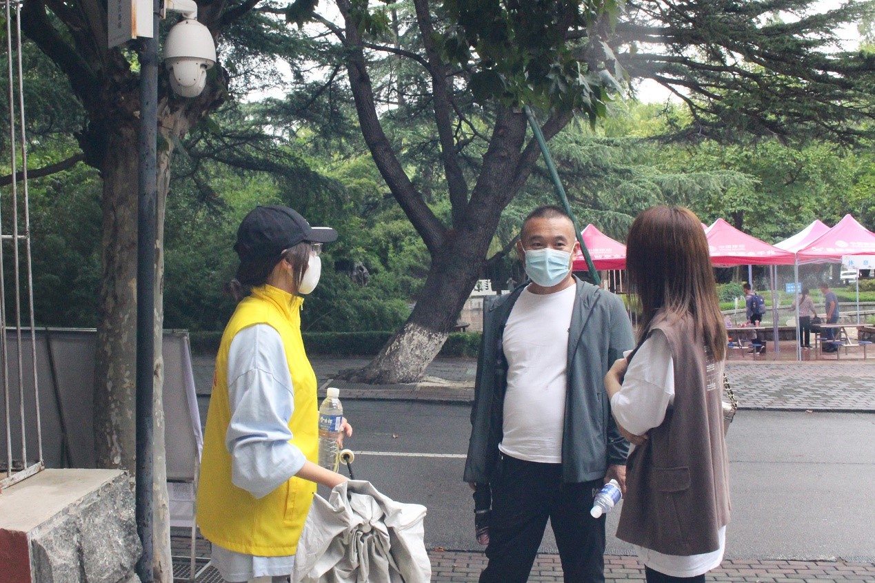 只要有新同学的地方,就有工作人员在等待。工作人员在宿舍接待点为每一位新生做好服务。