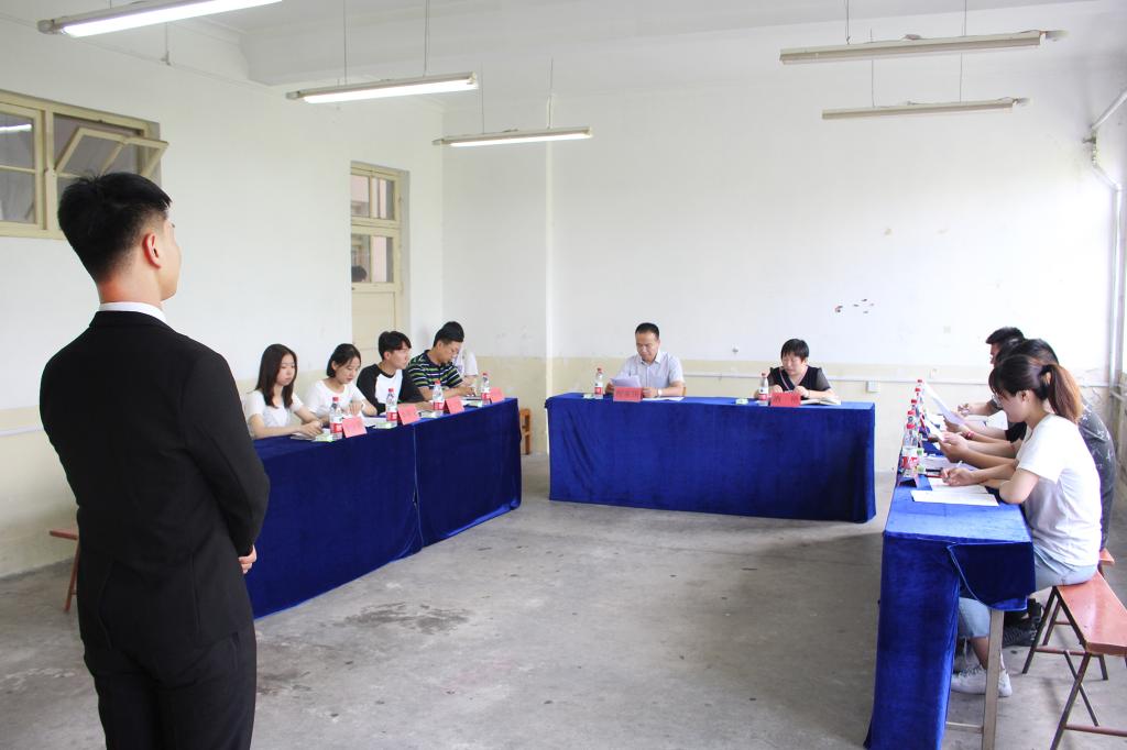 在3#506举行第二十三届学生会主席团换届竞选面试。学院党委副书记兼副院长程家国、团委书记洒艳、学院辅导员尹发利、王淦及第二十二届学生会主席团成员担任面试官,共有11位候选人参加。