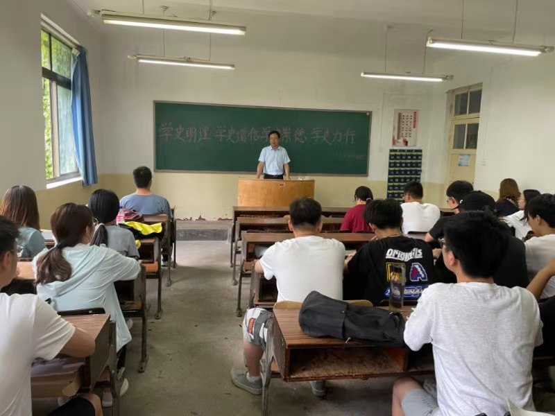 会上,尹发利领学了习近平总书记《论中国共产党历史》的主要篇目,动情讲述了在实现民族独立与人民解放的革命斗争、中国特色社会主义建设和改革开放的现代化建设大潮中涌现出的先进事迹与标志性事件。他指出,当前,我国正处于实现中华民族伟大复兴关键时期,世界正经历百年未有之大变局,在这一重大历史时刻,组织开展党史学习教育,对于总结历史经验、认识历史规律、掌握历史主动,对于传承红色基因、牢记初心使命、坚持正确方向,对于深入学习领会习近平新时代中国特色社会主义思想,具有深远意义。他强调,百年党史是鲜活的教科书、是最好的营养剂,广大青年学生要在党史学习教育中,进一步统一思想、统一意志、统一行动,在新的历史起点上奋力夺取新时代中国特色社会主义伟大胜利。最后,他对与会学生提出三点党史学习教育要求,一是要把学习贯彻党的先进理论成果作为思想武装的重中之重,同学习马克思主义基本原理贯通起来,同学习党史、新中国史、改革开放史、社会主义发展史结合起来;二是要在学懂弄通做实上下苦功夫,力求学出政治能力、学出理论素养、学出人民情怀、学出责任担当;三是要坚持问题导向、坚持知行合一、坚持对照反思。