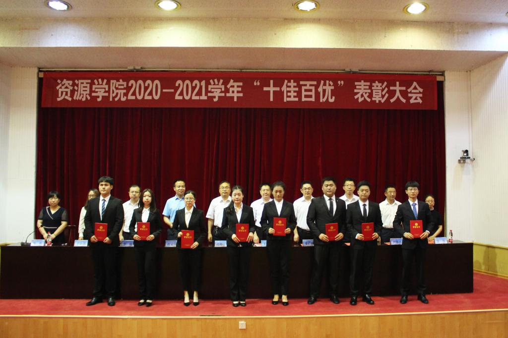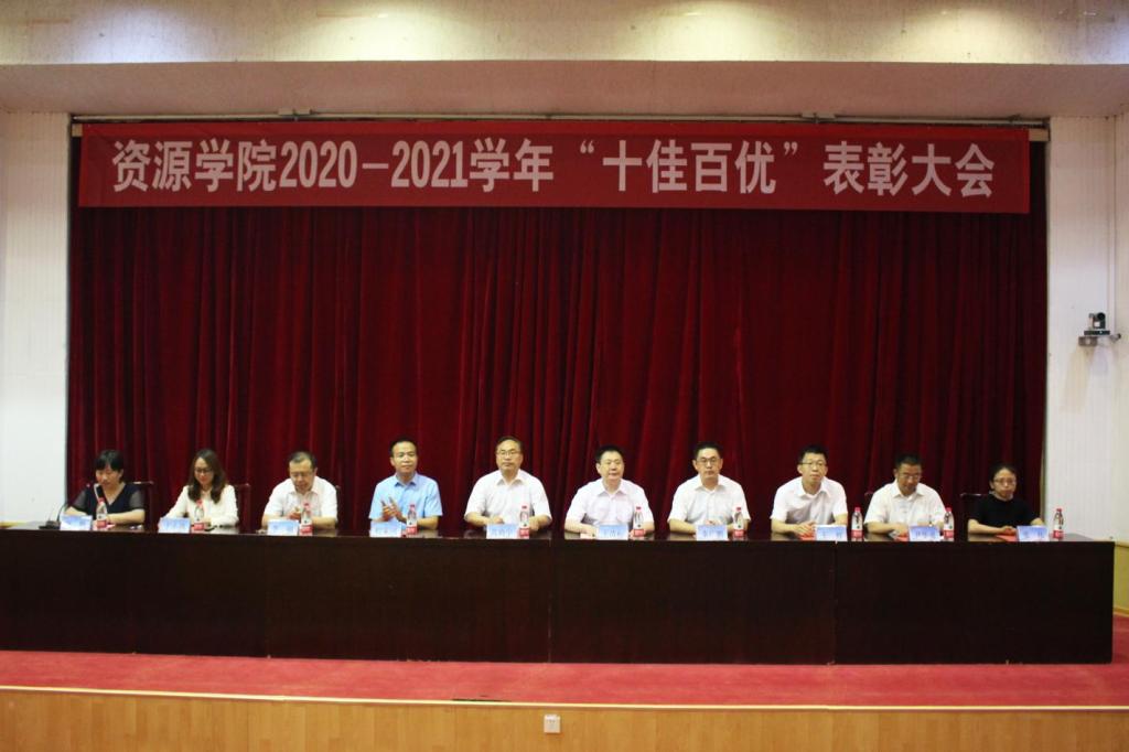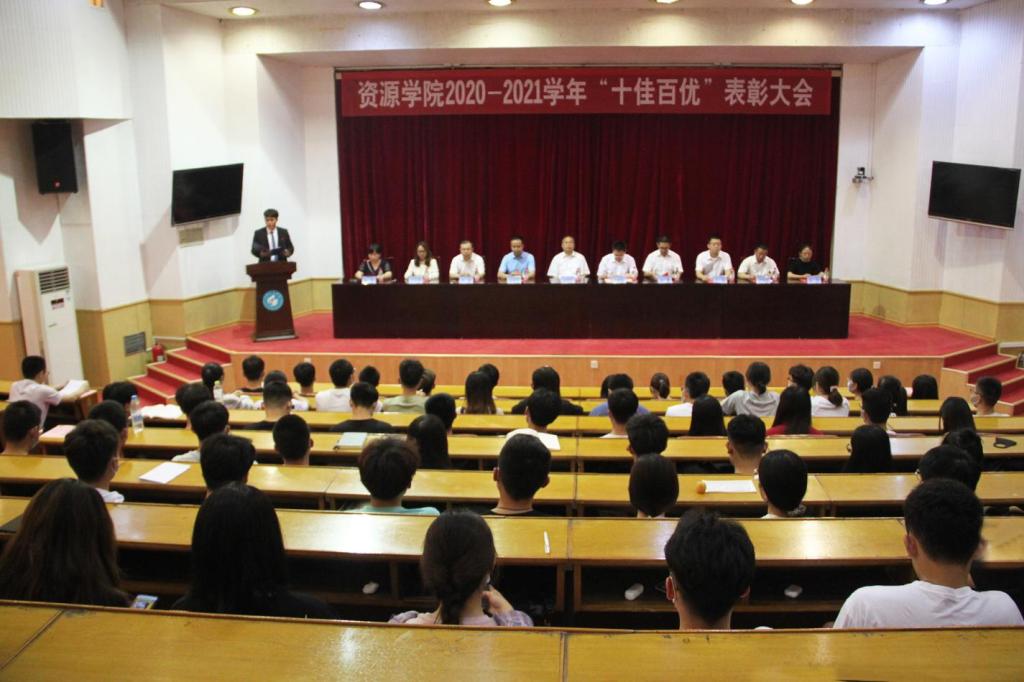 在四号楼报告厅召开2020-2021学年“十佳百优”表彰大会。学院领导班子及党政办、教科办主任出席会议。大会由团委书记洒艳主持。