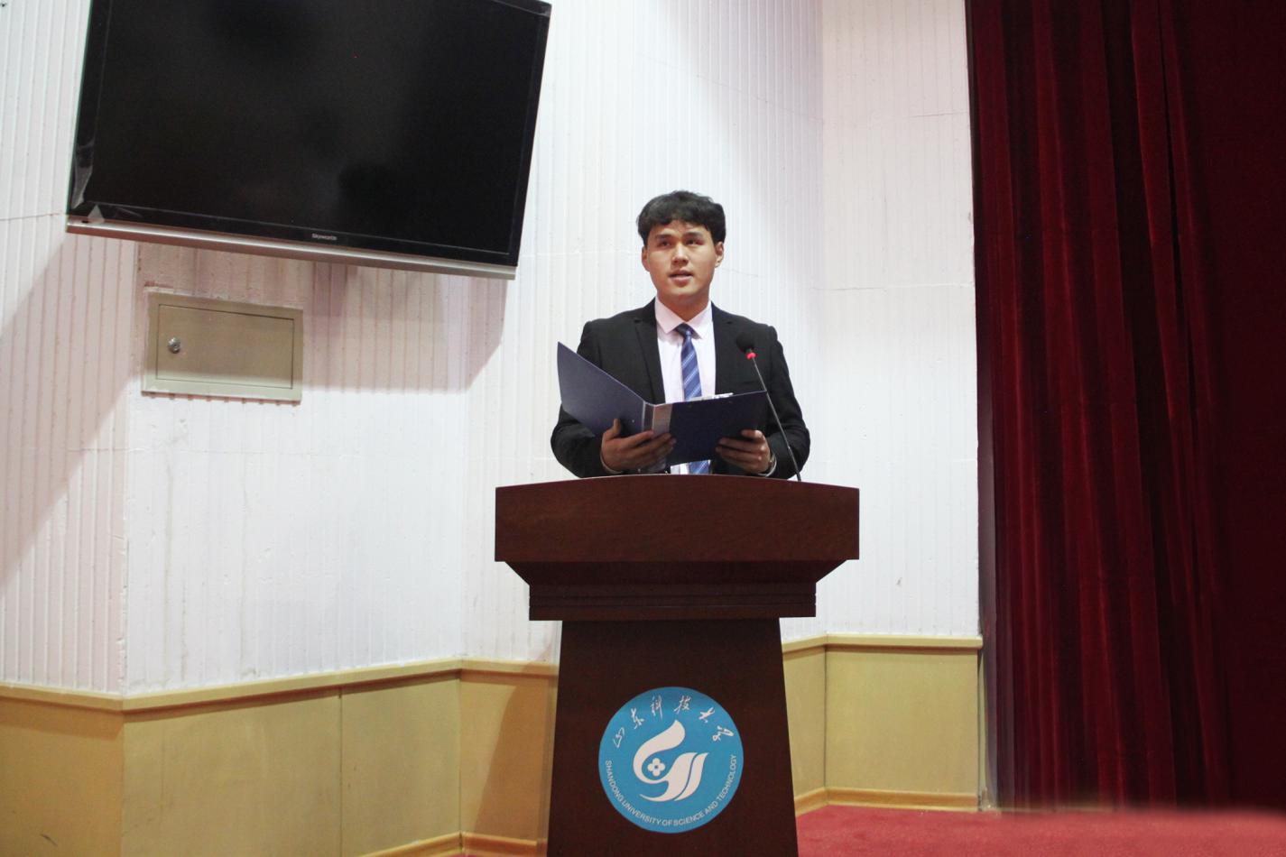 教师代表郑朋强、学生代表姜自健在会上发言。十佳大学生、优秀集体代表和优秀个人代表分别上台领奖。