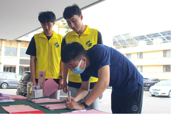 在报到现场,校友嘉宾依次签到登记、办理入住手续,并根据个人意愿进行了扫码捐款,尽心竭力助推母校发展。此外,学院团委老师亲临现场,全程参与引导、登记工作,热情迎候校友回家。