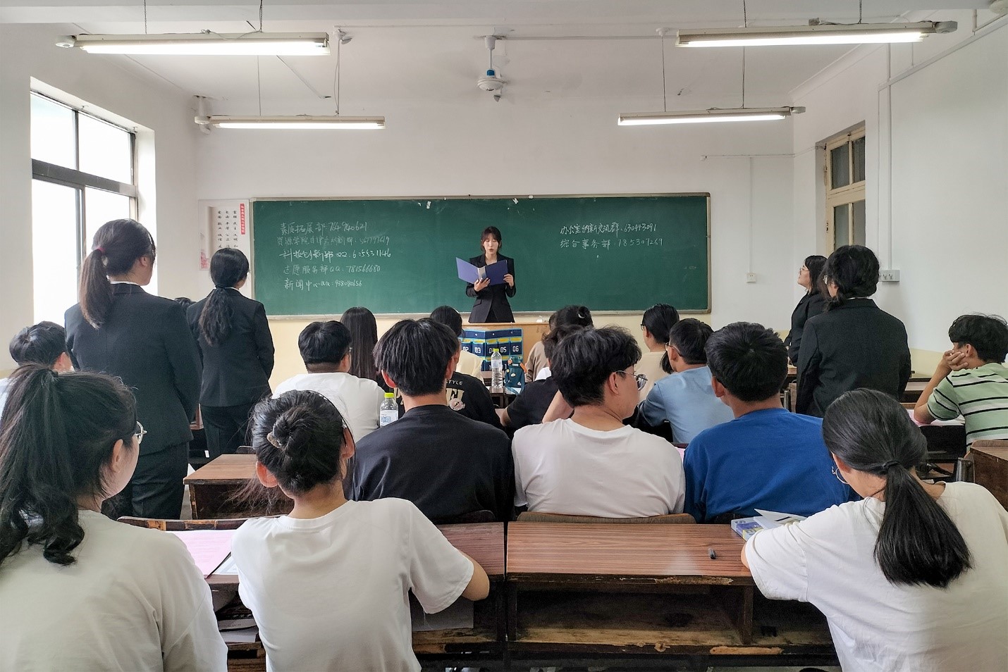 活动开展前,学生会各部门提前规划、有序分工,确保纳新宣传活动有序进行。活动中,各部门成员身着正装、面带微笑,进入新生自习室,就部门职能、部门特色、岗位需求、职责分工等方面向新生们展开全面细致的宣传,鼓励新生根据兴趣爱好选择心仪的岗位,积极加入学生会大家庭,在服务同学中不断提高自身能力素质,为学院发展贡献力量。
