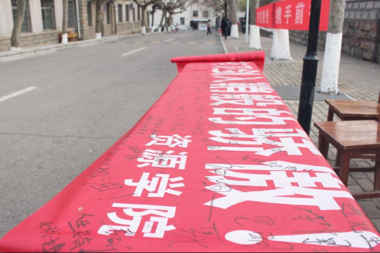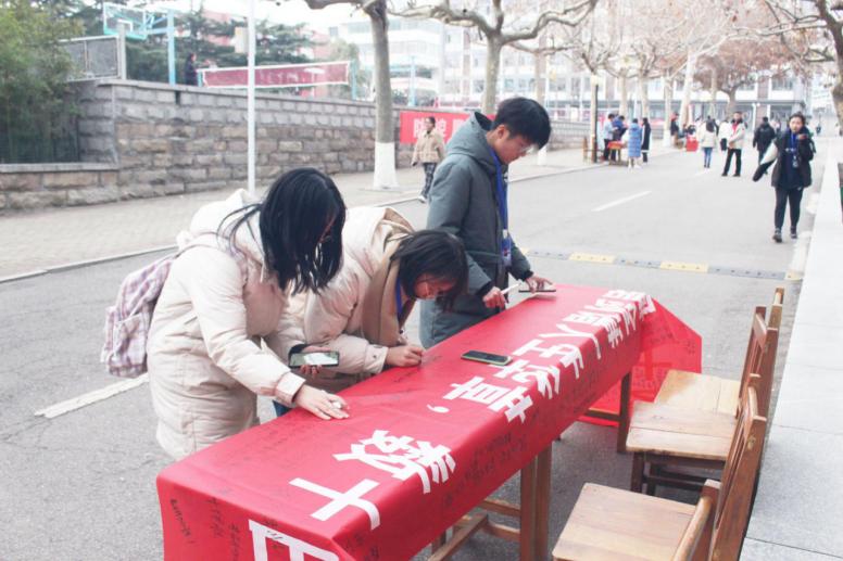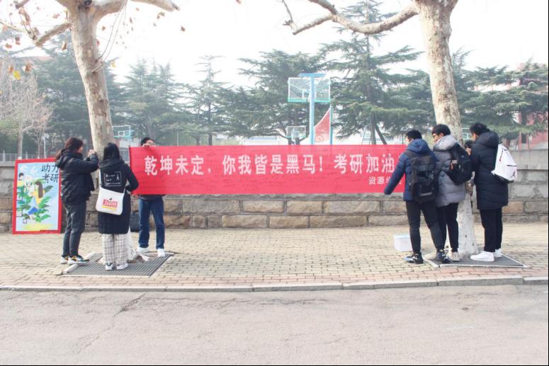 团委开展“条幅送祝福”考研助力活动,让考研学子在寒冷的冬日感受到来自学院师生的暖暖心意。