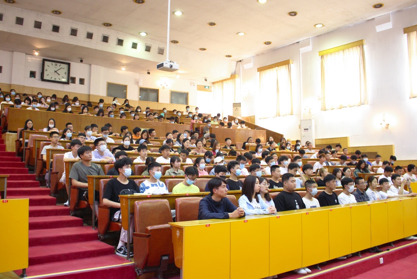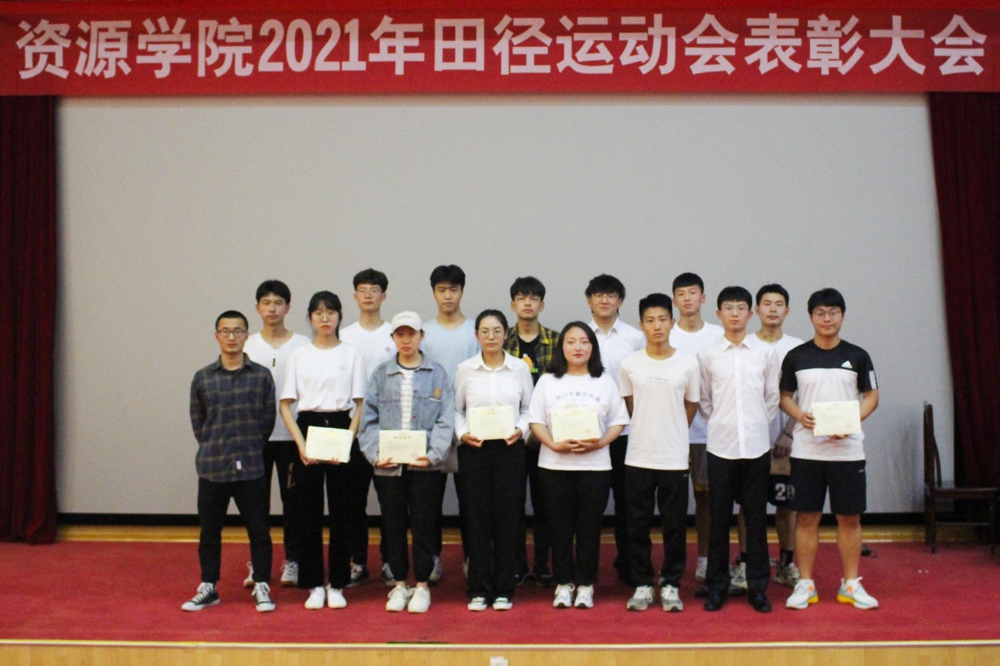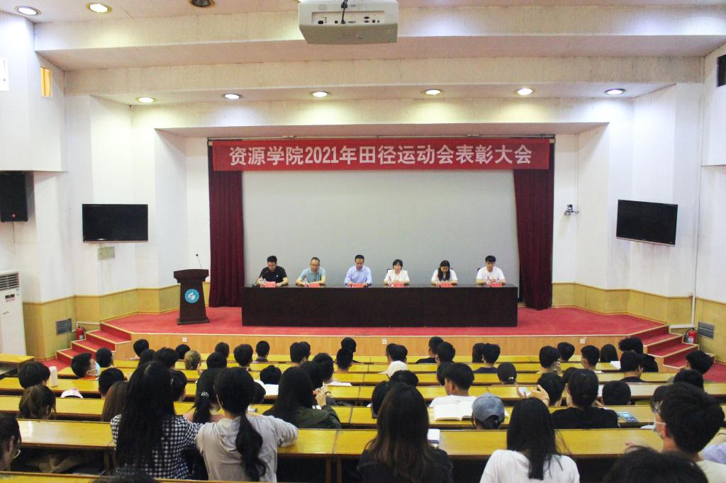 在四号楼报告厅召开2021年田径运动会表彰大会。学院党委副书记兼副院长程家国、团委书记洒艳、学院辅导员张运忠、卢业美、学生会负责人姜自健出席大会。会议由学院辅导员王淦主持,学院运动员代表与学生代表参会。