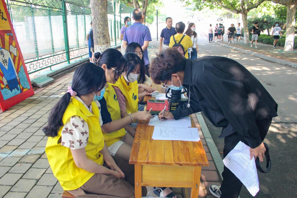 一大早,学院志愿者精心布置了“考试助力站”,提前布置好桌椅与展板,准备口罩、四六级专用耳机、配套电池、涂卡笔、中性笔、橡皮等考试相关用品,为考生提供出借服务。学院辅导员来到现场,与考生交流,为考生加油打气;志愿者认真细致、贴心提醒考试注意事项,让考生们倍感温暖。据统计,学院本次活动累计为同学们提供涂卡笔24支,中性笔15支,橡皮21块,电池10个。