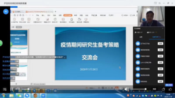通过网上直播的方式举办疫情期间研究生备考策略交流会,邀请褚芸萱、王琦等多名考研成绩优异的毕业生为有考研意向的同学分享经验、交流心得。此次交流会由学院团总支辅导员尹发利主持,共有281名同学在线参与。