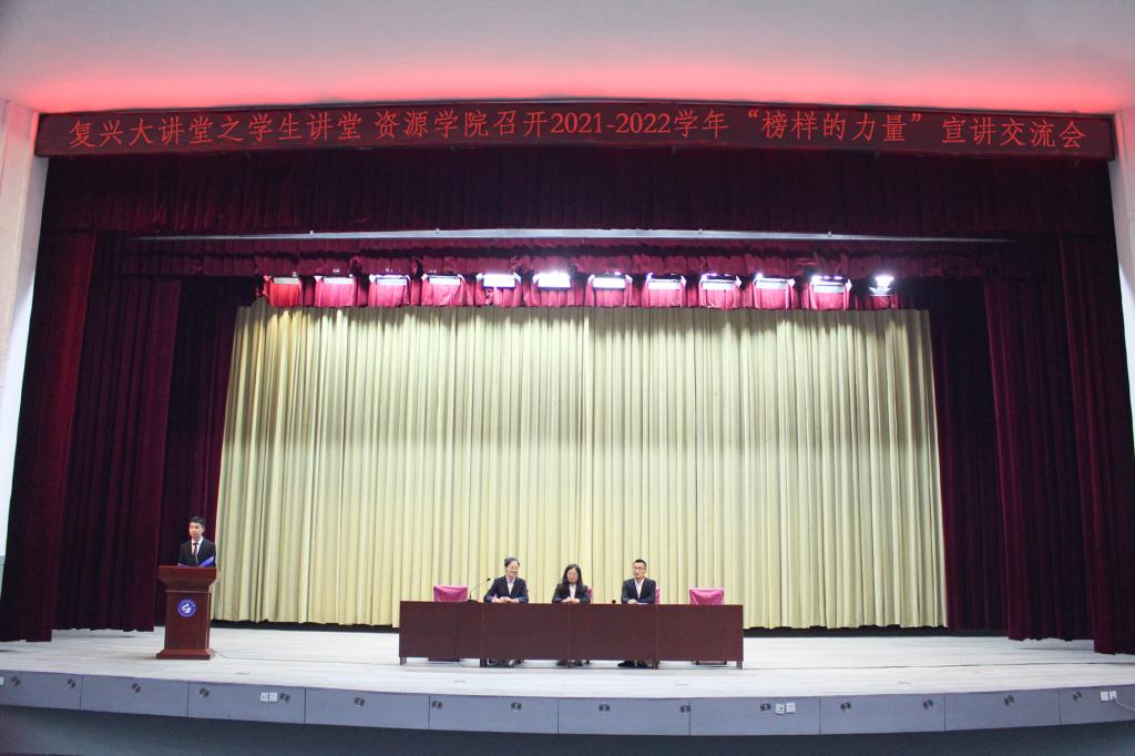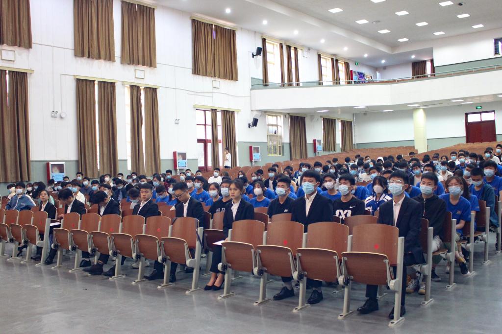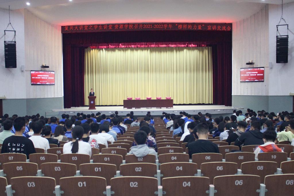 在东校园礼堂召开2021-2022学年“榜样的力量”宣讲交流会,学院优秀学生代表段蓉蓉、陈翌娇、刘帅杰、董英浩担任主讲,2021级全体新生参加。