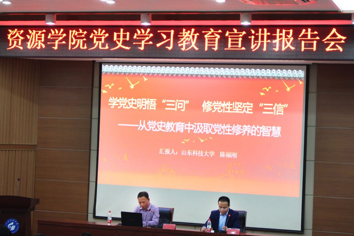 邀请校党史学习教育宣讲团成员陈福刚,在一号楼报告厅为学院全体教职工及学生党员作宣讲报告。会议由学院党委副书记兼副院长程家国主持。