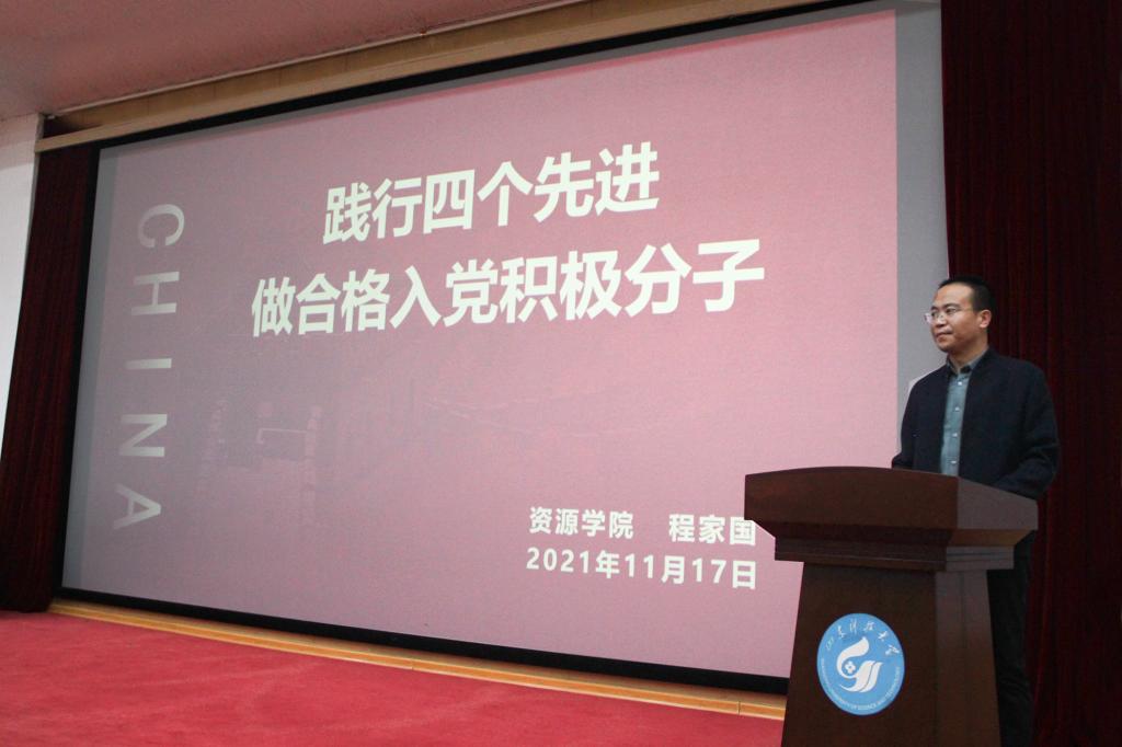 11月17日,色情av影片 党委副书记兼副院长程家国在四号楼报告厅为学院第35期入党积极分子讲授“践行四个先进,做合格入党积极分子”专题党课。