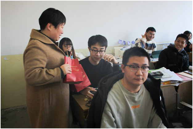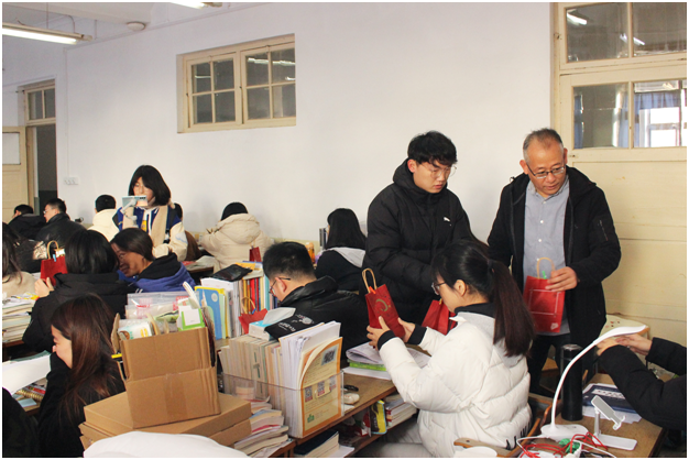 “学院给大家送上福袋,希望这些小小的礼物能给大家缓解压力,鼓劲加油。请大家相信,你们绝不是孤军奋战!”学院党委副书记程家国亲手将一个个福袋递到考研学子手中,向考研学子表示慰问、鼓励和期望。