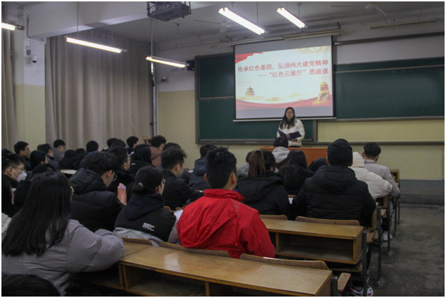 学生第一、第二党支部书记卢业美、洒艳分别在5#206、5#606为学院全体学生党员讲授“传承红色基因,弘扬伟大建党精神”专题思政课。