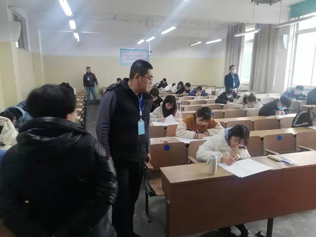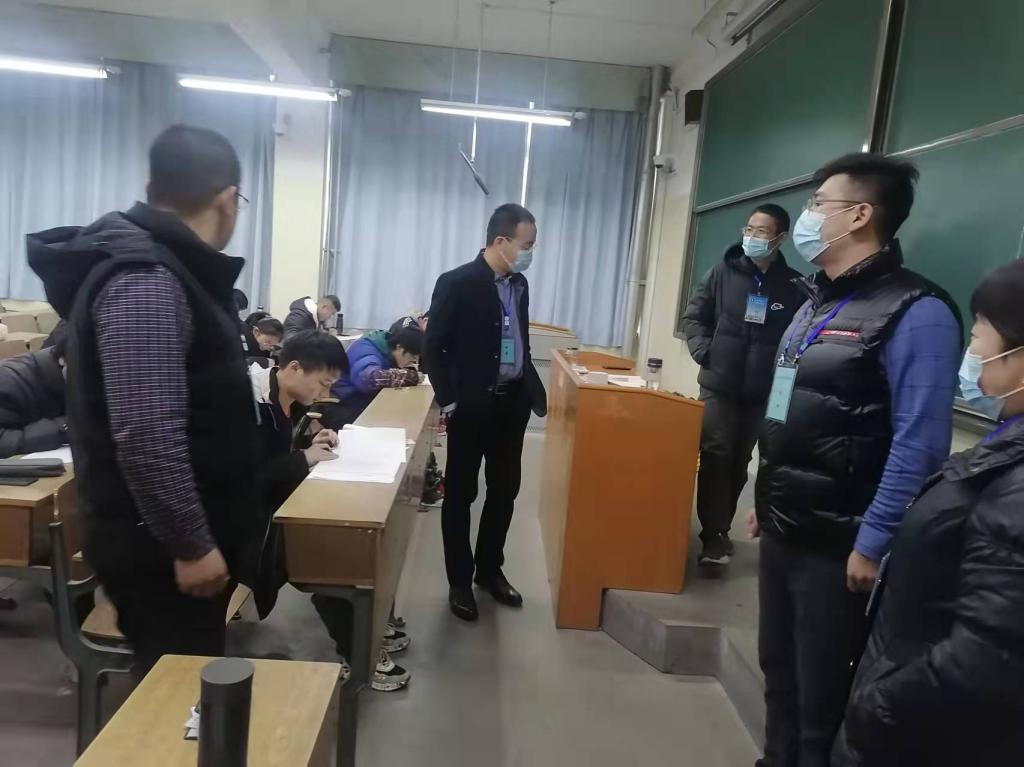 1月4日,色情av影片 党委副书记、副院长程家国,学院副院长秦广鹏带领辅导员、教科办工作人员一行深入学院期末考试考场进行巡考。