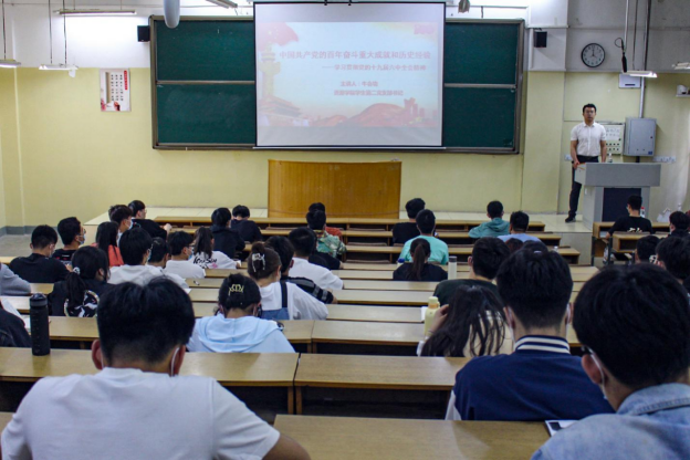 学生第二党支部书记牛会功为学院第36期入党积极分子讲授“党的百年奋斗重大成就和历史经验—学习贯彻党的十九届六中全会精神”专题党课。