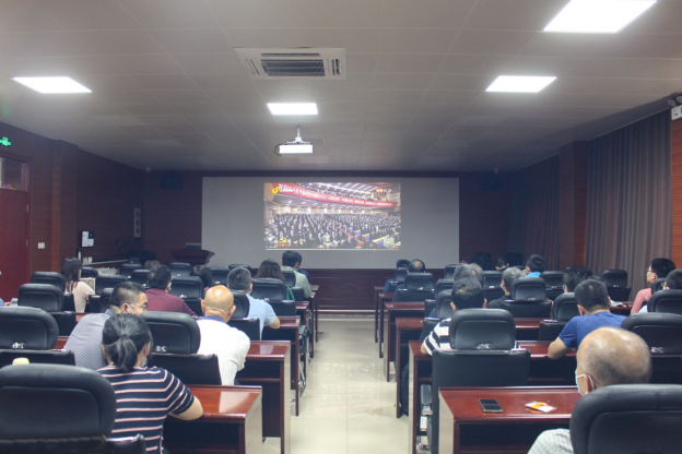 在2#201组织全体教职工集体收看中国共产党山东省第十二次代表大会开幕式直播。省委书记李干杰作的《牢记嘱托走在前 勇担使命开新局 为建设新时代社会主义现代化强省而奋斗努力》报告在学院教职工中引发了热烈反响。
