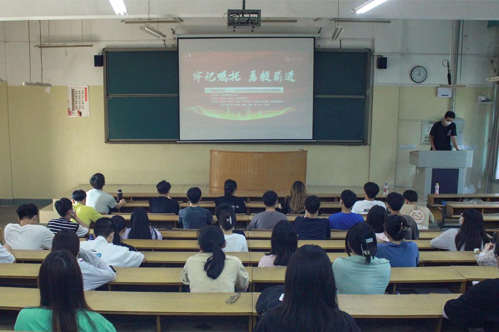 在5#206组织全体学生党员观看“牢记嘱托 勇毅前进”2022年高校党组织示范微党课展播。