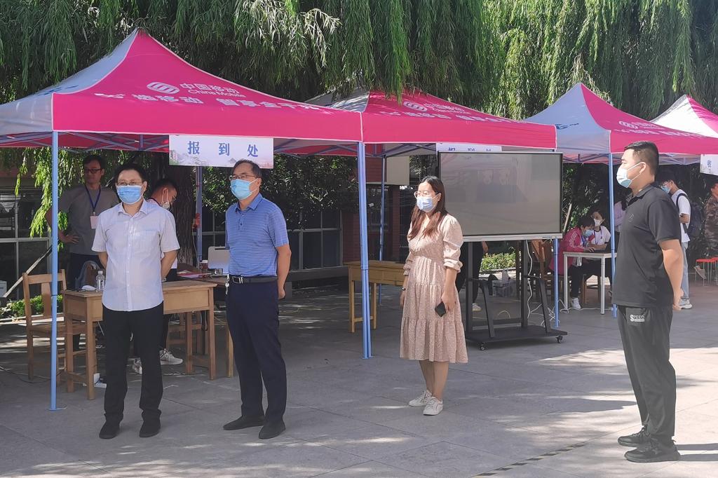 迎新现场,学院党委书记高尚宇、院长王清标一行前往新生报到点及服务点,详细了解了新生报到及迎新工作开展情况,强调各站点要严格落实疫情防控要求,团结协作、密切配合、认真负责,确保每一位新生能够安全、便捷报到入学,让新生和家长切实感受到“放心、安心、暖心”。