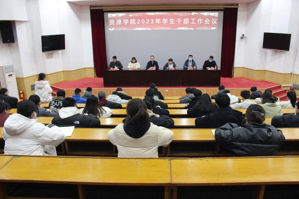 在四号楼报告厅召开2023年度学生干部工作会议,开展学生干部培训。学院党委副书记、副院长程家国发表讲话,学院团委书记、学工办主任洒艳作2022年度工作总结并对2023年工作进行部署,学院全体辅导员出席,全体学生干部参加会议。