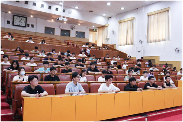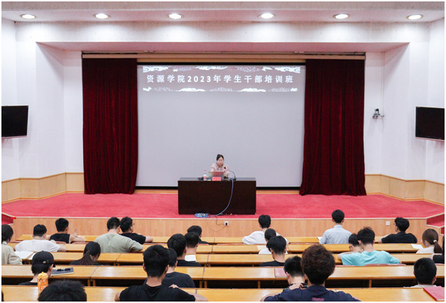 在四号楼报告厅举办2023年学生干部培训班第四讲。辅导员卢业美担任主讲,学院主要学生干部参加。