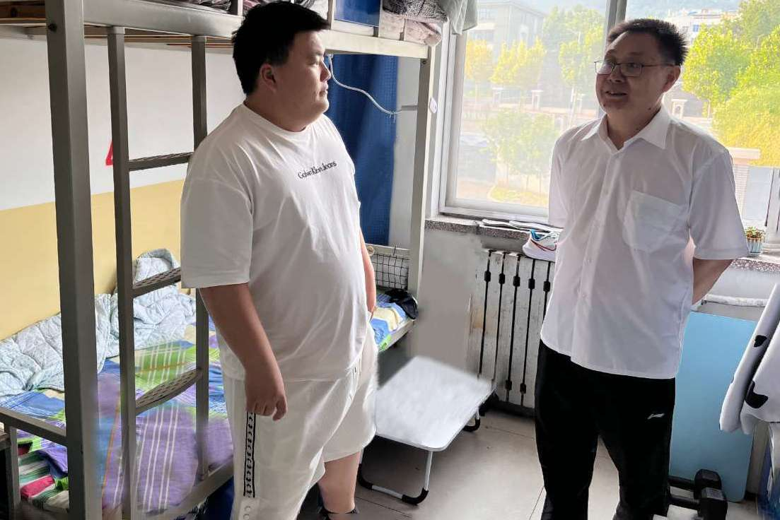 在学生宿舍,王清标与同学们进行了近距离、亲切地交流,详细了解同学们的课程进度、学习情况、生活状况以及临近考试的复习安排和心理状态,广泛听取大家学习、生活各方面的建议,叮嘱同学们天气炎热要注意劳逸结合,养成良好的学习习惯和健康的生活方式。