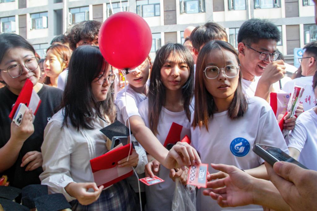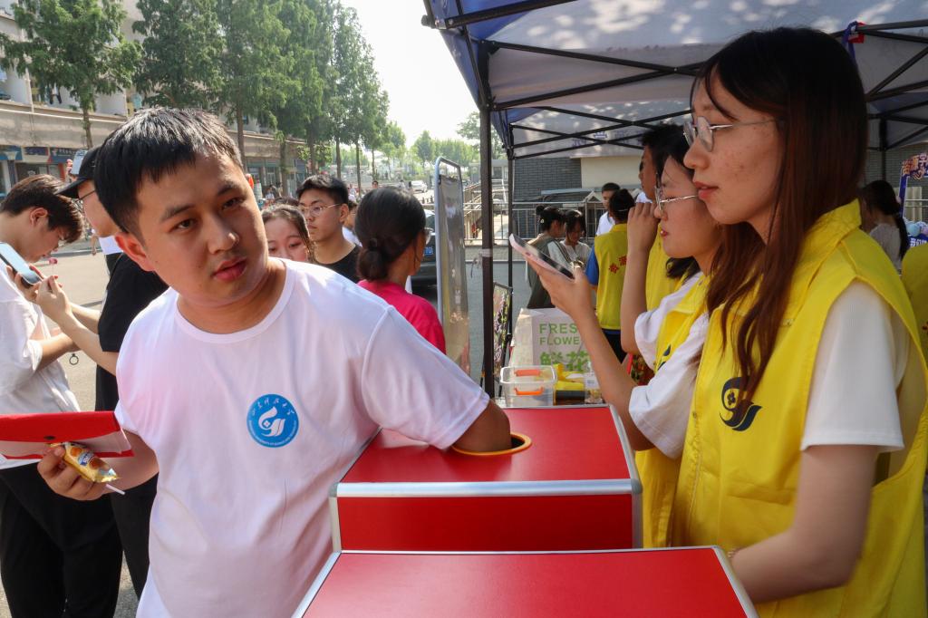 别出心裁,通过递上一张“免早签单”,送上一支鲜花,刮开一份“惊喜”等创意的方式,温情送别2023届毕业生。