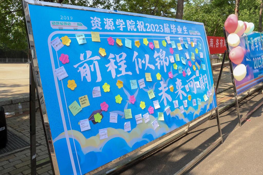 “长风破浪会有时,直挂云帆济沧海”“愿你逢山开路,遇水架桥”“保持那一份热爱,奔赴下一场山海”……老师们在便利贴上留下殷殷寄语,学弟学妹们书写真挚祝福。祝愿毕业生未来前程似锦,爱意与温暖在照片与祝福之间升腾、翻涌、传递。