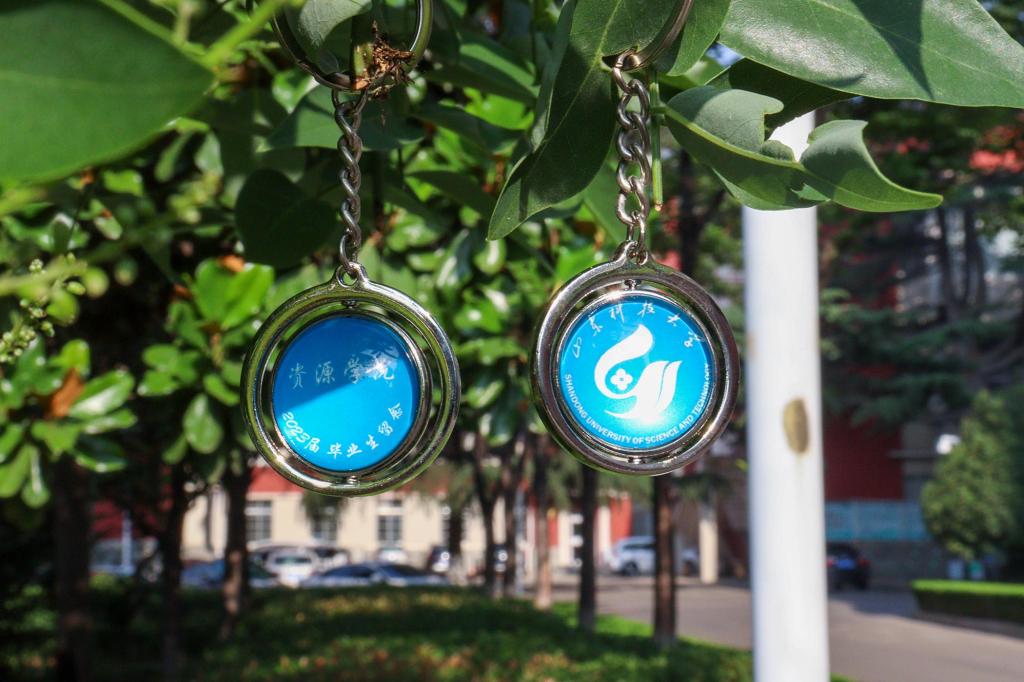 标志的钥匙扣,寓意无论相隔多远,毕业生与母校环环相扣。
