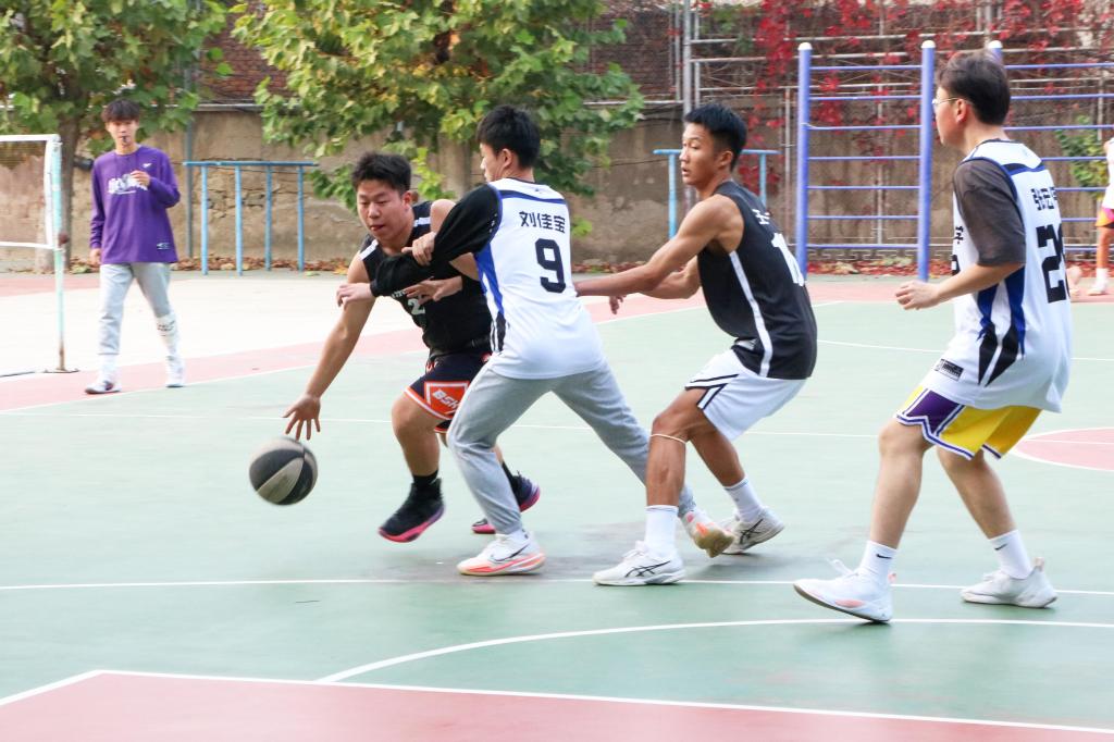 2021级篮球队与2022级篮球队在西校园篮球场展开对决。