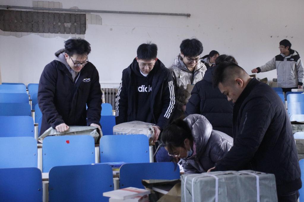 新学期的扉页在书籍的墨香中被翻开。同学们进行搬运、拆封、分拣教材等准备工作,师生密切配合,顺利完成了教材的登记、清点、核对和领取,为新学期教学工作顺利开展奠定了良好的基础。