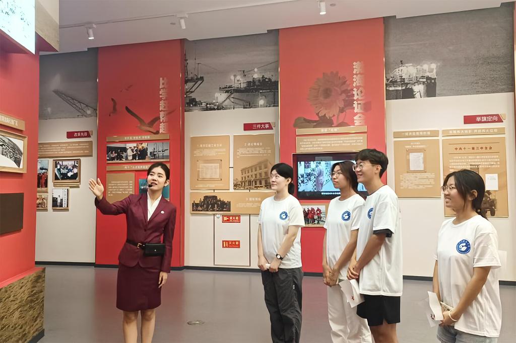 “暑期三下乡”薪火石油文化服务宣讲团实践团队赴天津市中国海洋石油工业陈列馆参观学习。