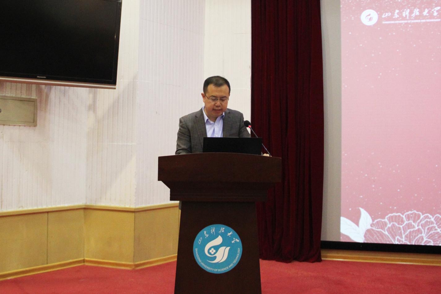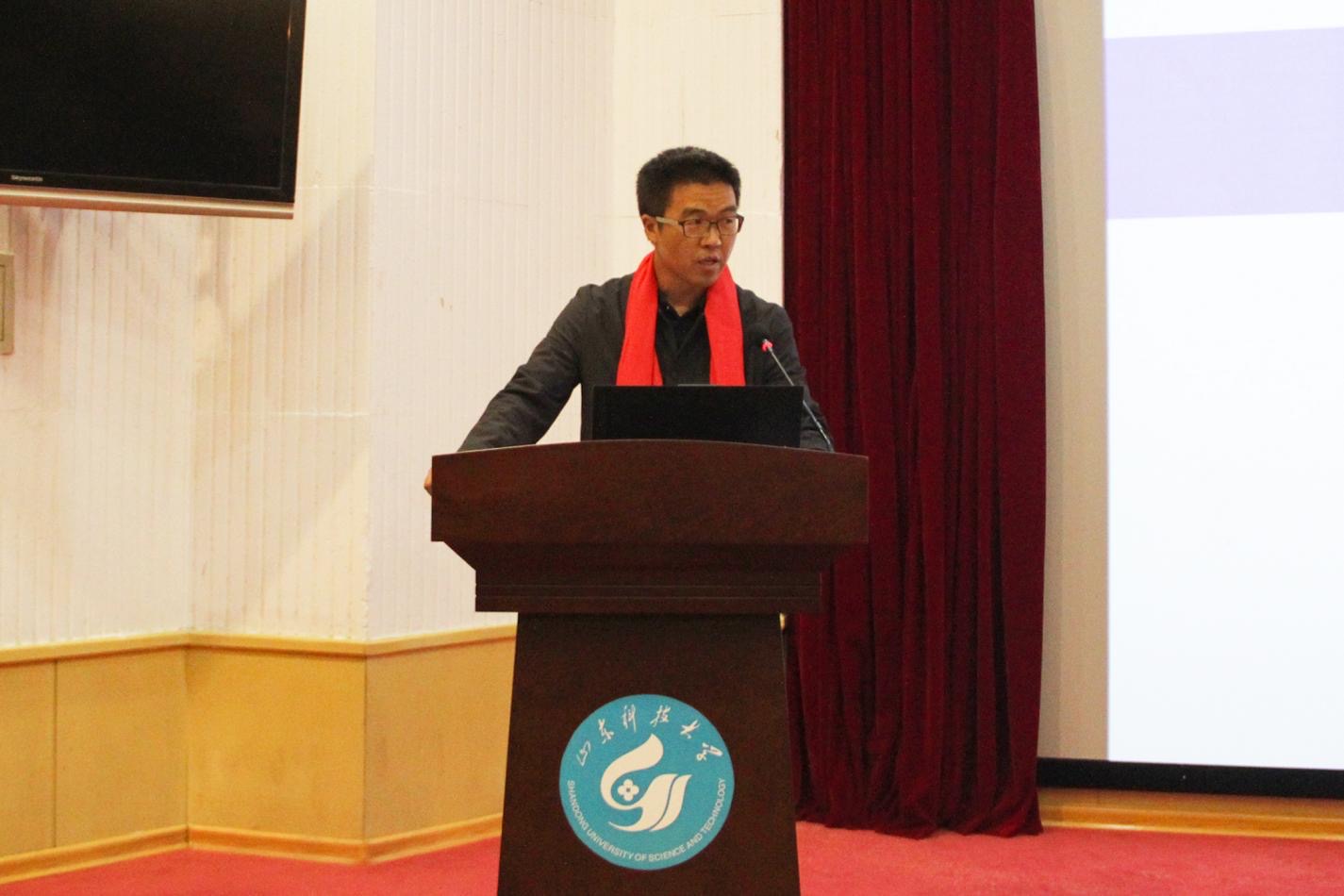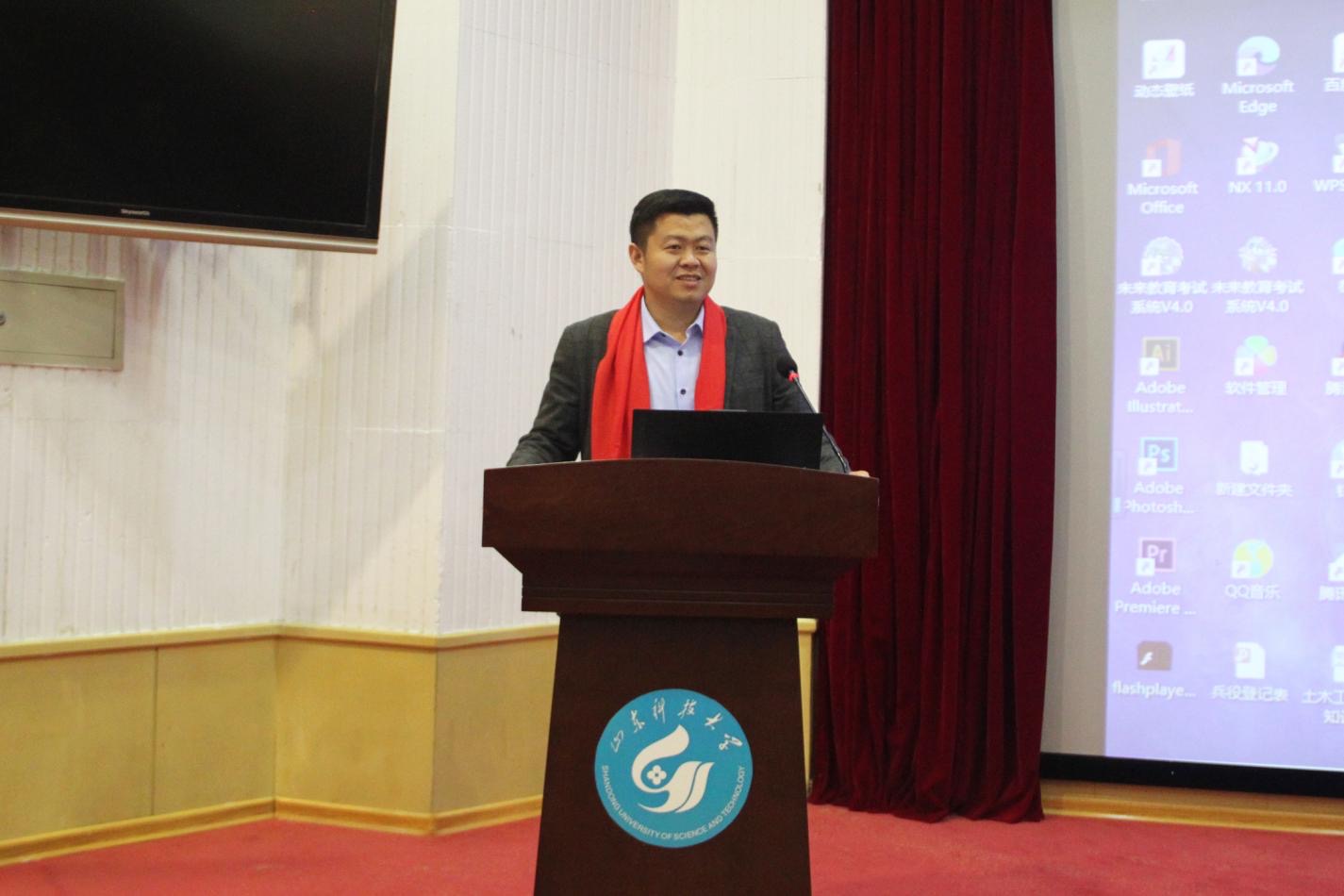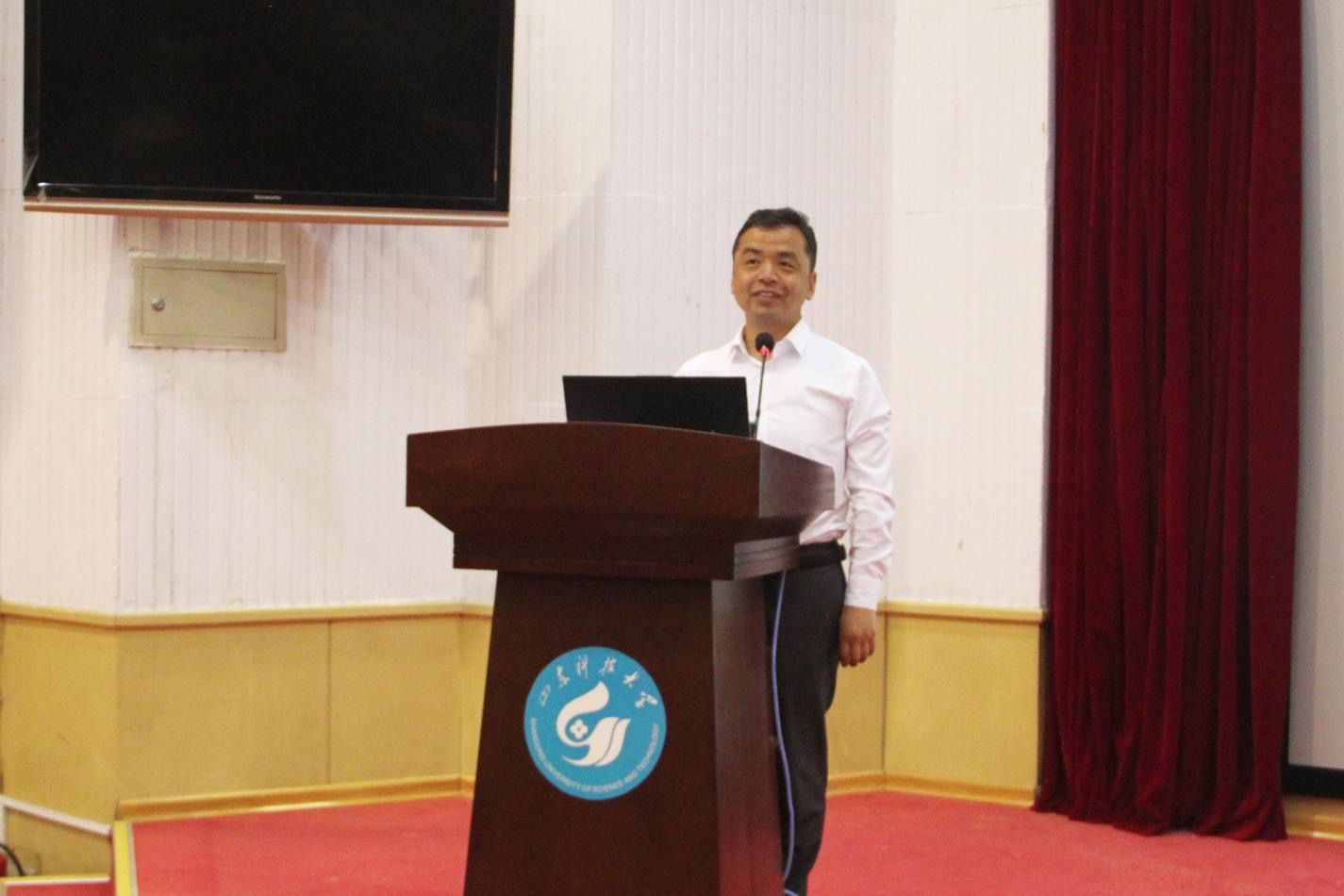 首先,中国电建市政建设集团有限公司山东公司副总经济师、济南片区第一党支部书记、中科院计算所项目负责人高级工程师赵万国发言。赵万国结合多年的工程实践经验,对房屋建筑工程安全实践进行了全面介绍。他从房屋建筑工程的历时长短、步骤顺序、社会意义等方面,详细介绍了工程实施过程中的各项信息,点明了安全实践的重要性与必要性。赵万国表示,房屋建筑的防灾减灾技术是紧缺的关键安全技术,学院学子要充分利用闲暇时间学习专业相关知识,尽己所能考取专业证书,为将来改善安全措施、保证安全条件奠定基础。