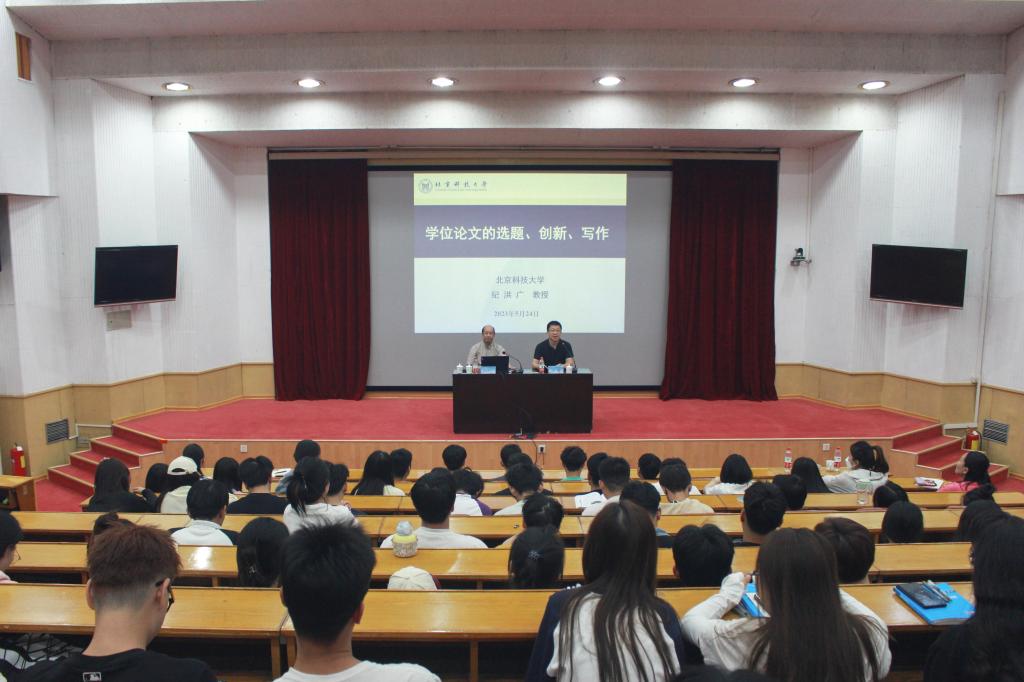 师生作“学位论文的选题创新与写作”学术报告,报告会由副院长王辉主持,学院全体教师、全体研究生及2020级本科生参加。